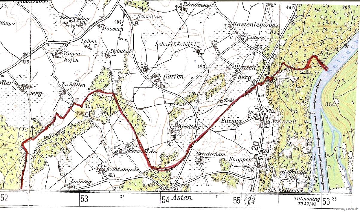 In etwa der Grenzverlauf zwischen dem Erzstift Salzburg und Bayern bis ca. 1816. Der Bereich von Peterwinkeln, Rotkampeln,Laiming, Unterried bis Manetsberg wird noch heute im Volksmund "Hadermark" genannt, was darauf schließen lässt, dass über den Grenzverlauf des öfteren "gehadert" wurde