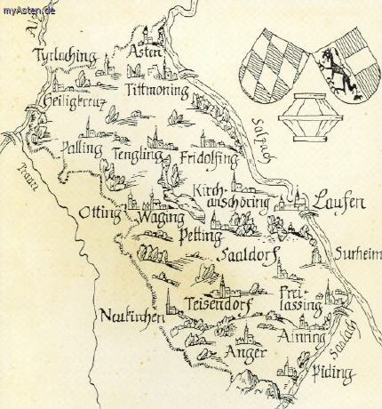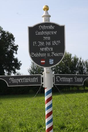 eine neues Schild bei Asten Richtung Dorfen weist darauf hin, das Fischerstrassl bildet die Grenze hier zwischen Baiern und Salzburg. Heute ist es die Grenze zwischen Landkreis Traunstein und Altötting und der Gemeinden Burgkirchen und Tittmoning. Gleichzeitig endet hier die "Kulturgrenze" zwischen Rupertiwinkel und dem Oettinger Land